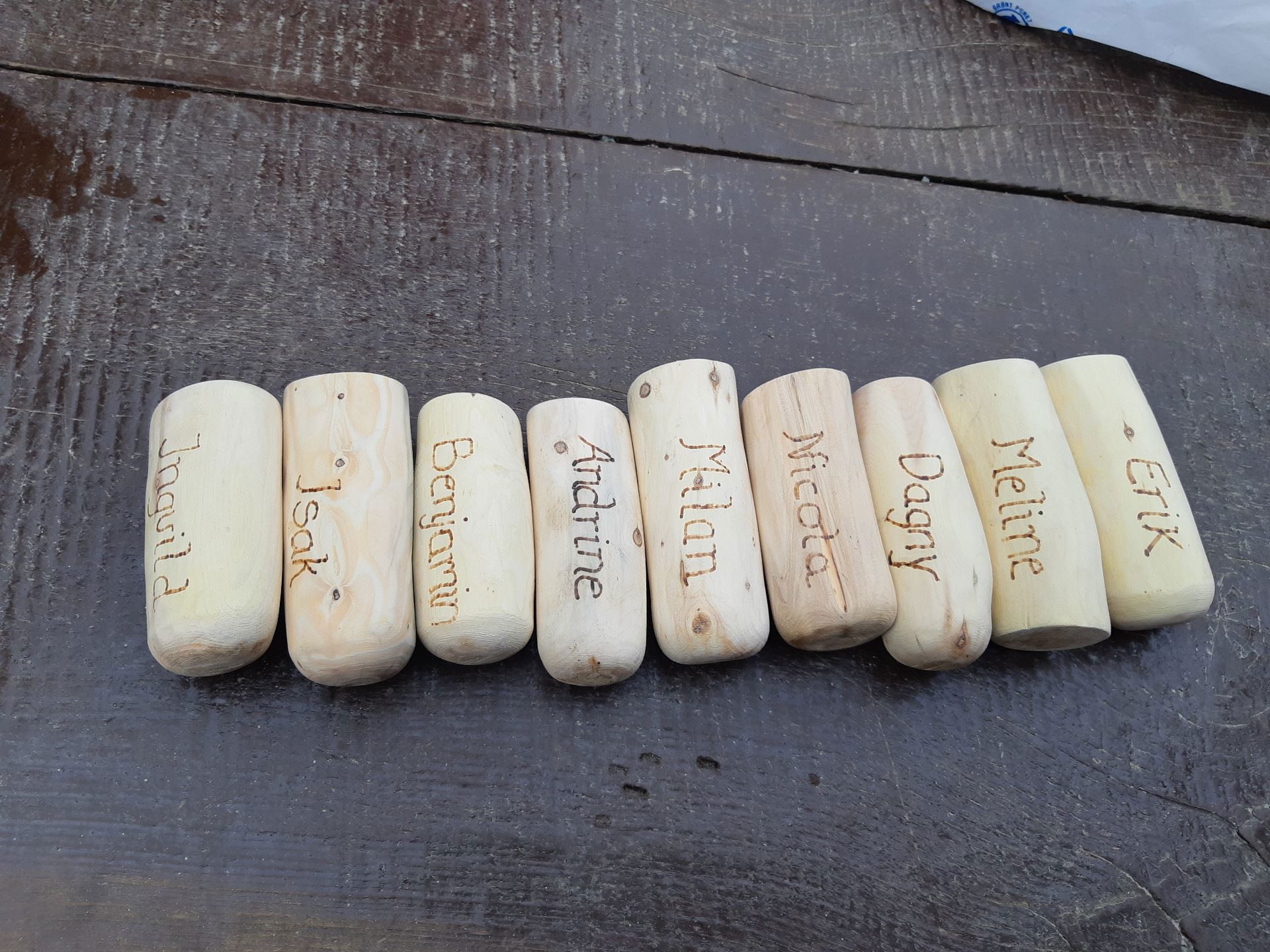 Vi går i skogen og sager emner til kniv, deretter spikker vi og pusser i masseviss. Førskolingene er super ivrig og vet at når de slutter i barnehagen til sommeren får de med seg hver sin spikkekniv med navnet sitt med hjem. Stor stas !!